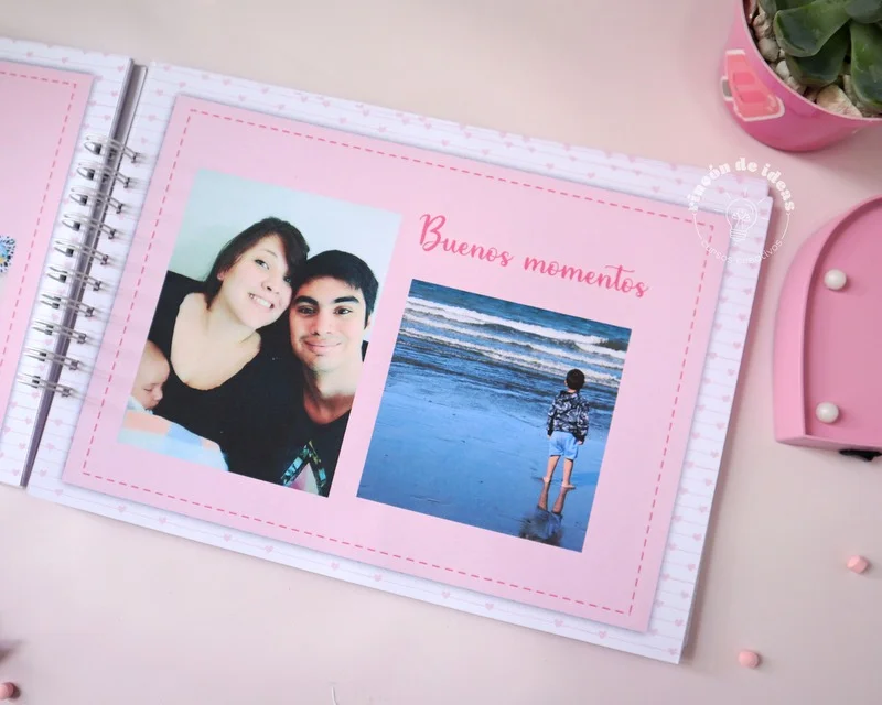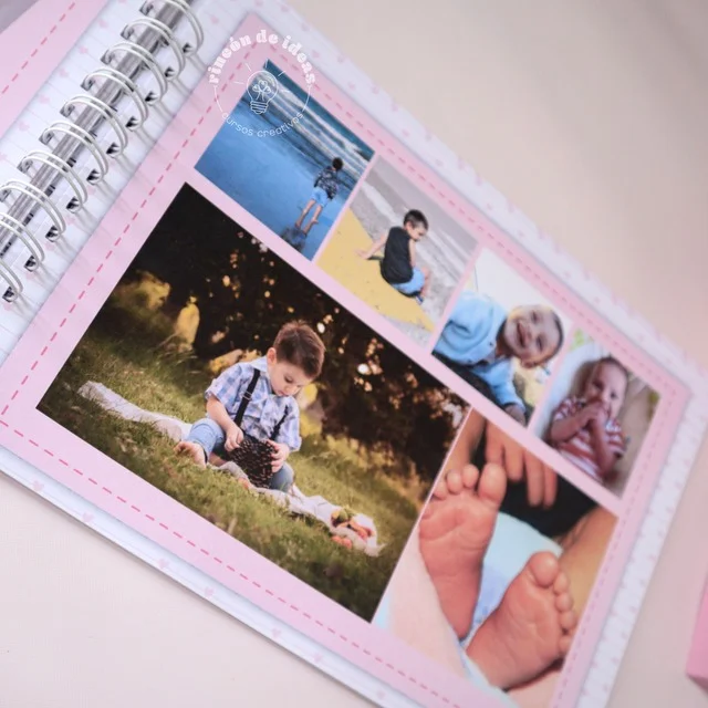– 14 Hojas en el interir con diseño, para colocar las foto. las podes imprimir las veces que quieras